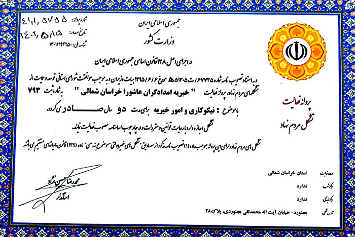 اخبار شعبه برگزاری دومین همایش خیرین مؤسسه امدادگران عاشورای خراسان شمالی توزیع ۱۷۶ بسته گوشت گرم گوسفندی میان مددجویان خراسان شمالی استقبال از تیم دوچرخهسواری خیریه امدادگران عاشورای کاشان در بجنورد برگزاری کارگاه آموزش و پیشگیری از عوارض سرطان بارگذاری موارد بیشتر اطلاعات شعبه آدرس : بجنورد، چهارراه آیینه خانه ، خیابان ایت ا… بجنوردی، سر کوچه بجنوردی ۸